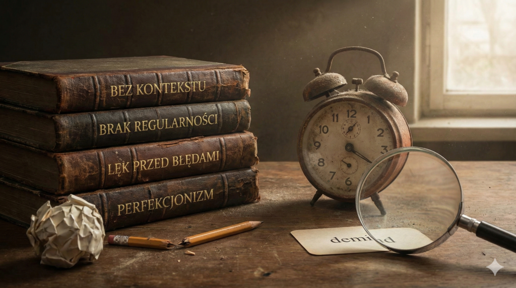 Brak efektów w nauce języka rzadko wynika z braku zdolności. Najczęściej to konsekwencja powtarzalnych, ale mało skutecznych nawyków: uczenia się bez kontekstu, odkładania mówienia „na później”, skupiania się na perfekcji zamiast komunikacji i działania bez planu.