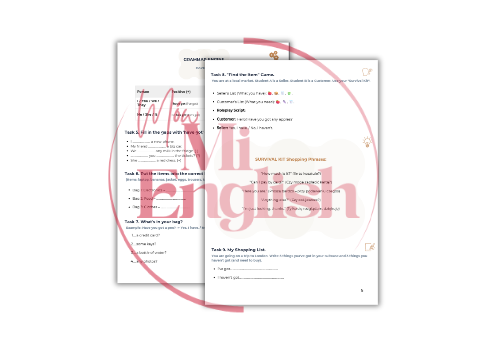 Cel dydaktyczny: Opanowanie i automatyzacja konstrukcji have got w kontekście handlowym oraz nabycie umiejętności sprawnego poruszania się w sytuacjach zakupowych.