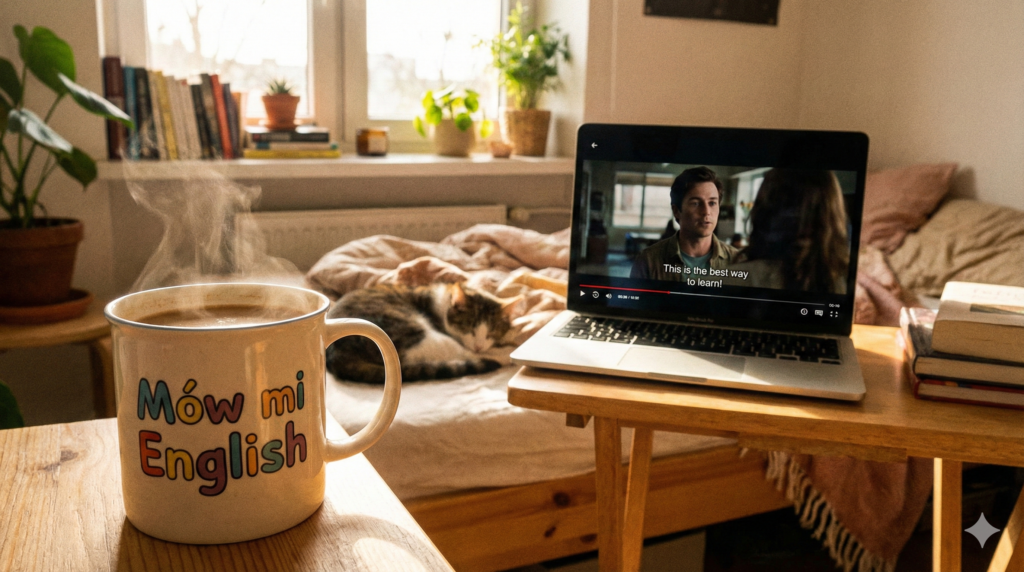 Wiele osób pyta: „Czy z napisami to jeszcze nauka, czy już oszustwo?”. Nauka mówi jasno: napisy to Twoje najlepsze narzędzie treningowe! Szczególnie te w języku angielskim (L2 captions) robią dla Ciebie niesamowitą robotę – pozwalają Ci widzieć słowa dokładnie w momencie, gdy je słyszysz. Dzięki temu Twój mózg uczy się rozpoznawać granice między wyrazami, co w angielskim (gdzie wymowa bywa podstępna) jest kluczowe. Badania pokazują, że osoby korzystające z napisów znacznie lepiej radzą sobie z zapamiętywaniem szczegółów i poprawną wymową niż ci, którzy tylko słuchają (Vanderplank, Subtitles and Language Learning). To jak jazda na rowerze z bocznymi kółkami – dają Ci stabilność, dzięki której szybciej odważysz się je odkręcić i pojechać samodzielnie.